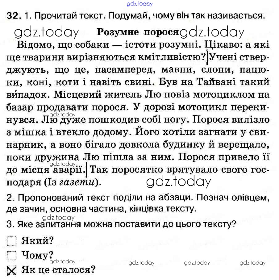 На страницах сайта gdz.today вы найдете учебный и вспомогательный материал, направленный на улучшения знаний школьной программы. ГДЗ - онлайн мир знаний Рішення до Вправи 32 Рабочей тетради по Украинскому языку для 3 класса Васильковская, Мельничайко Освiта 2014