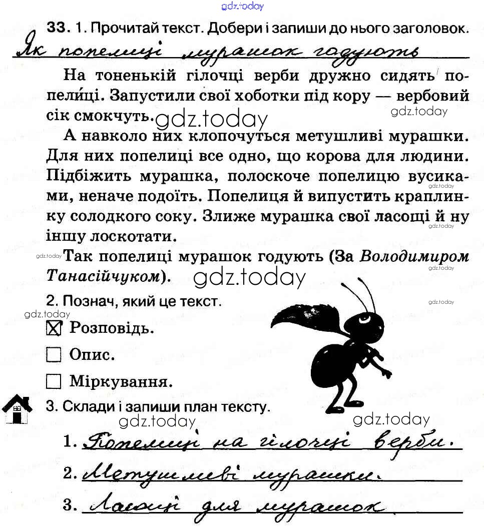 На страницах сайта gdz.today вы найдете учебный и вспомогательный материал, направленный на улучшения знаний школьной программы. ГДЗ - онлайн мир знаний Рішення до Вправи 33 Рабочей тетради по Украинскому языку для 3 класса Васильковская, Мельничайко Освiта 2014