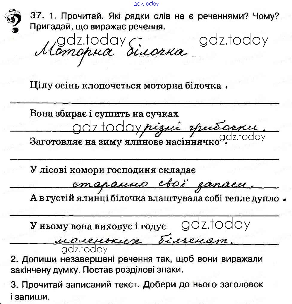 На страницах сайта gdz.today вы найдете учебный и вспомогательный материал, направленный на улучшения знаний школьной программы. ГДЗ - онлайн мир знаний Рішення до Вправи 37 Рабочей тетради по Украинскому языку для 3 класса Васильковская, Мельничайко Освiта 2014