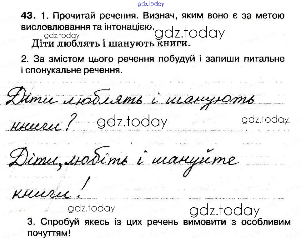 На страницах сайта gdz.today вы найдете учебный и вспомогательный материал, направленный на улучшения знаний школьной программы. ГДЗ - онлайн мир знаний Рішення до Вправи 43 Рабочей тетради по Украинскому языку для 3 класса Васильковская, Мельничайко Освiта 2014