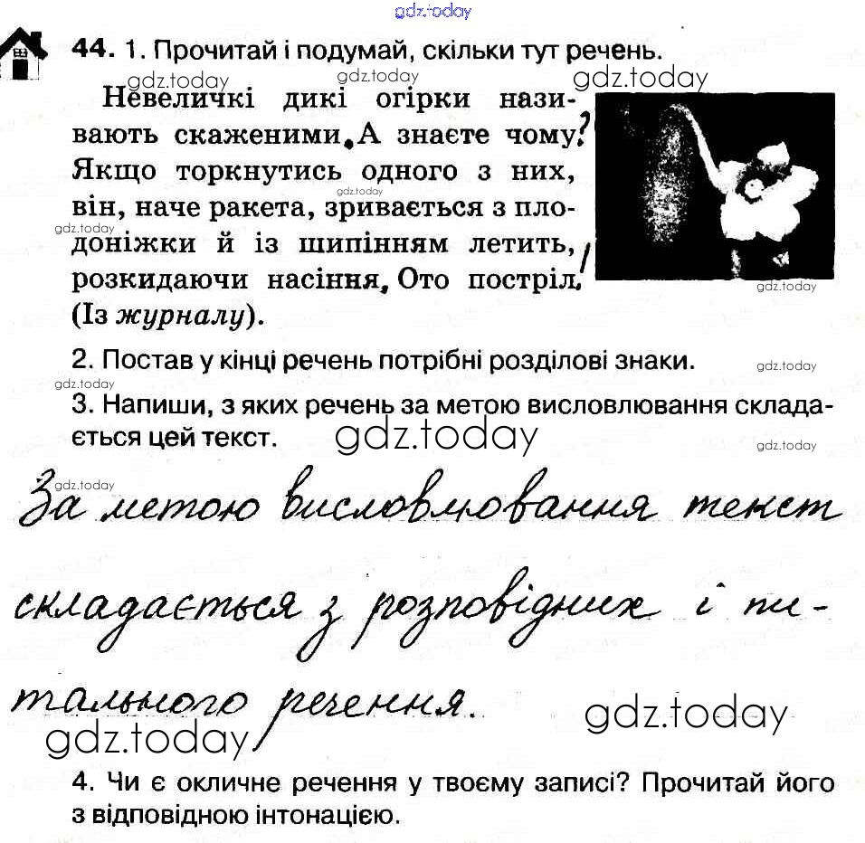 На страницах сайта gdz.today вы найдете учебный и вспомогательный материал, направленный на улучшения знаний школьной программы. ГДЗ - онлайн мир знаний Рішення до Вправи 44 Рабочей тетради по Украинскому языку для 3 класса Васильковская, Мельничайко Освiта 2014