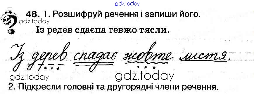 На страницах сайта gdz.today вы найдете учебный и вспомогательный материал, направленный на улучшения знаний школьной программы. ГДЗ - онлайн мир знаний Рішення до Вправи 48 Рабочей тетради по Украинскому языку для 3 класса Васильковская, Мельничайко Освiта 2014