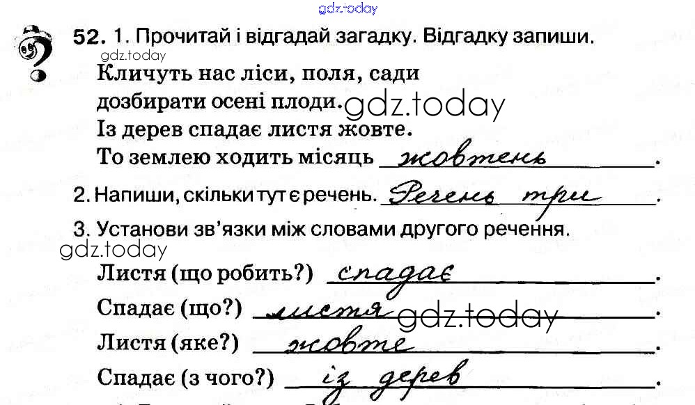 На страницах сайта gdz.today вы найдете учебный и вспомогательный материал, направленный на улучшения знаний школьной программы. ГДЗ - онлайн мир знаний Рішення до Вправи 52 Рабочей тетради по Украинскому языку для 3 класса Васильковская, Мельничайко Освiта 2014
