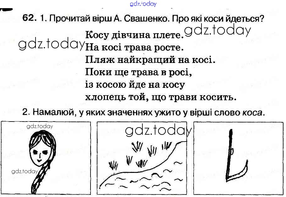 На страницах сайта gdz.today вы найдете учебный и вспомогательный материал, направленный на улучшения знаний школьной программы. ГДЗ - онлайн мир знаний Рішення до Вправи 62 Рабочей тетради по Украинскому языку для 3 класса Васильковская, Мельничайко Освiта 2014