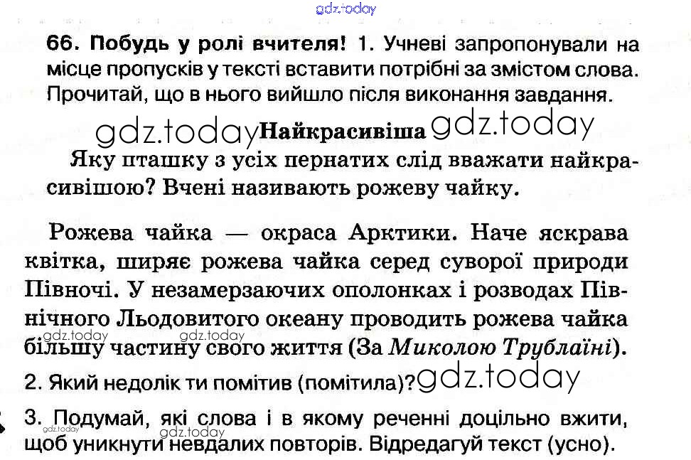 На страницах сайта gdz.today вы найдете учебный и вспомогательный материал, направленный на улучшения знаний школьной программы. ГДЗ - онлайн мир знаний Рішення до Вправи 66 Рабочей тетради по Украинскому языку для 3 класса Васильковская, Мельничайко Освiта 2014