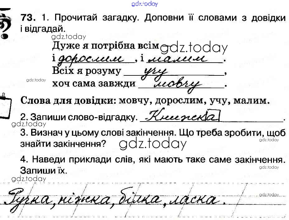 На страницах сайта gdz.today вы найдете учебный и вспомогательный материал, направленный на улучшения знаний школьной программы. ГДЗ - онлайн мир знаний Рішення до Вправи 73 Рабочей тетради по Украинскому языку для 3 класса Васильковская, Мельничайко Освiта 2014