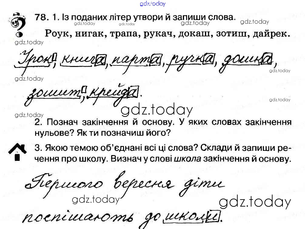 На страницах сайта gdz.today вы найдете учебный и вспомогательный материал, направленный на улучшения знаний школьной программы. ГДЗ - онлайн мир знаний Рішення до Вправи 78 Рабочей тетради по Украинскому языку для 3 класса Васильковская, Мельничайко Освiта 2014