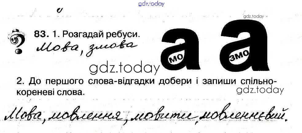 Ответы к Рішення до Вправи 83 Рабочей тетради по Украинскому языку для 3 класса Васильковская, Мельничайко Освiта 2014