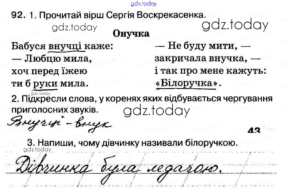 На страницах сайта gdz.today вы найдете учебный и вспомогательный материал, направленный на улучшения знаний школьной программы. ГДЗ - онлайн мир знаний Рішення до Вправи 92 Рабочей тетради по Украинскому языку для 3 класса Васильковская, Мельничайко Освiта 2014