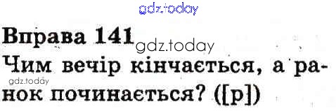 На страницах сайта gdz.today вы найдете учебный и вспомогательный материал, направленный на улучшения знаний школьной программы. ГДЗ - онлайн мир знаний Рішення до Вправи 141 Учебнику по Украинскому языку для 3 класса Гавриш, Макротенко Генеза 2014