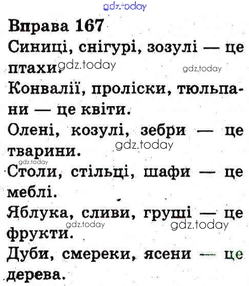 На страницах сайта gdz.today вы найдете учебный и вспомогательный материал, направленный на улучшения знаний школьной программы. ГДЗ - онлайн мир знаний Рішення до Вправи 167 Учебнику по Украинскому языку для 3 класса Гавриш, Макротенко Генеза 2014