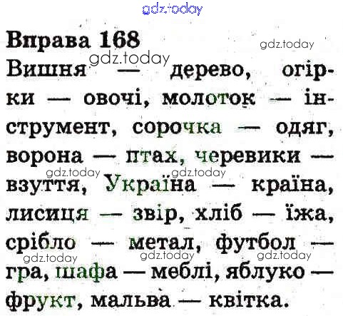 На страницах сайта gdz.today вы найдете учебный и вспомогательный материал, направленный на улучшения знаний школьной программы. ГДЗ - онлайн мир знаний Рішення до Вправи 168 Учебнику по Украинскому языку для 3 класса Гавриш, Макротенко Генеза 2014