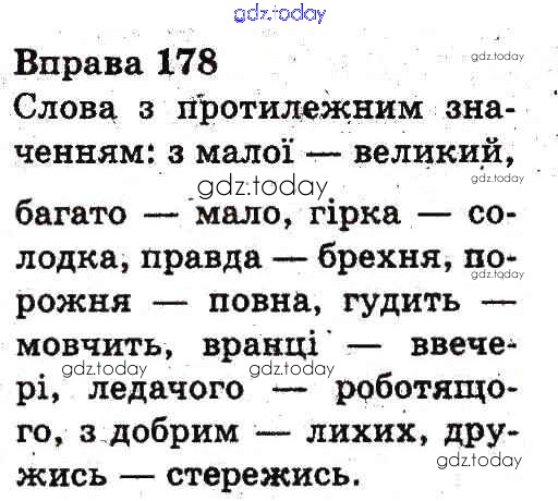 На страницах сайта gdz.today вы найдете учебный и вспомогательный материал, направленный на улучшения знаний школьной программы. ГДЗ - онлайн мир знаний Рішення до Вправи 178 Учебнику по Украинскому языку для 3 класса Гавриш, Макротенко Генеза 2014