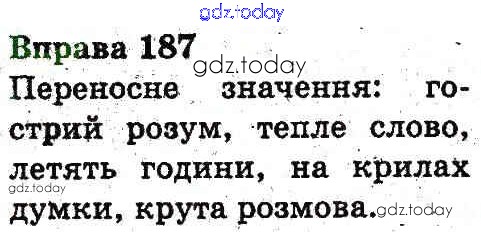На страницах сайта gdz.today вы найдете учебный и вспомогательный материал, направленный на улучшения знаний школьной программы. ГДЗ - онлайн мир знаний Рішення до Вправи 187 Учебнику по Украинскому языку для 3 класса Гавриш, Макротенко Генеза 2014