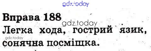 На страницах сайта gdz.today вы найдете учебный и вспомогательный материал, направленный на улучшения знаний школьной программы. ГДЗ - онлайн мир знаний Рішення до Вправи 188 Учебнику по Украинскому языку для 3 класса Гавриш, Макротенко Генеза 2014