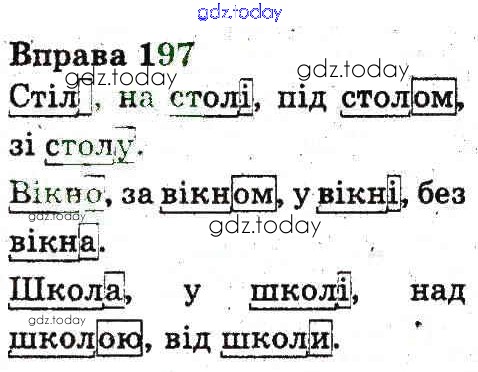 На страницах сайта gdz.today вы найдете учебный и вспомогательный материал, направленный на улучшения знаний школьной программы. ГДЗ - онлайн мир знаний Рішення до Вправи 197 Учебнику по Украинскому языку для 3 класса Гавриш, Макротенко Генеза 2014