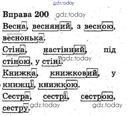 На страницах сайта gdz.today вы найдете учебный и вспомогательный материал, направленный на улучшения знаний школьной программы. ГДЗ - онлайн мир знаний Рішення до Вправи 200 Учебнику по Украинскому языку для 3 класса Гавриш, Макротенко Генеза 2014