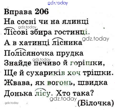 На страницах сайта gdz.today вы найдете учебный и вспомогательный материал, направленный на улучшения знаний школьной программы. ГДЗ - онлайн мир знаний Рішення до Вправи 206 Учебнику по Украинскому языку для 3 класса Гавриш, Макротенко Генеза 2014