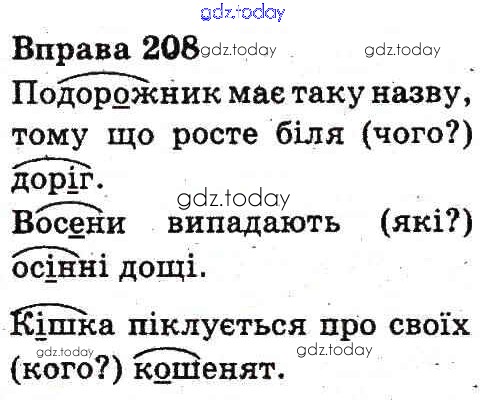 На страницах сайта gdz.today вы найдете учебный и вспомогательный материал, направленный на улучшения знаний школьной программы. ГДЗ - онлайн мир знаний Рішення до Вправи 208 Учебнику по Украинскому языку для 3 класса Гавриш, Макротенко Генеза 2014