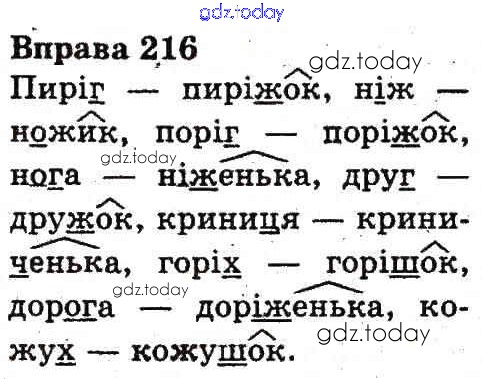 Ответы к Рішення до Вправи 216 Учебнику по Украинскому языку для 3 класса Гавриш, Макротенко Генеза 2014