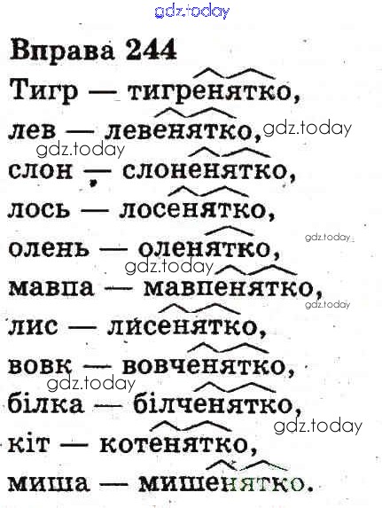 На страницах сайта gdz.today вы найдете учебный и вспомогательный материал, направленный на улучшения знаний школьной программы. ГДЗ - онлайн мир знаний Рішення до Вправи 244 Учебнику по Украинскому языку для 3 класса Гавриш, Макротенко Генеза 2014