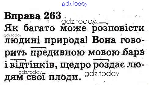 На страницах сайта gdz.today вы найдете учебный и вспомогательный материал, направленный на улучшения знаний школьной программы. ГДЗ - онлайн мир знаний Рішення до Вправи 263 Учебнику по Украинскому языку для 3 класса Гавриш, Макротенко Генеза 2014