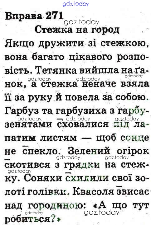 На страницах сайта gdz.today вы найдете учебный и вспомогательный материал, направленный на улучшения знаний школьной программы. ГДЗ - онлайн мир знаний Рішення до Вправи 271 Учебнику по Украинскому языку для 3 класса Гавриш, Макротенко Генеза 2014