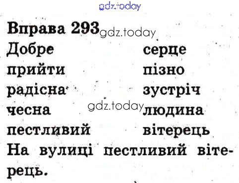 На страницах сайта gdz.today вы найдете учебный и вспомогательный материал, направленный на улучшения знаний школьной программы. ГДЗ - онлайн мир знаний Рішення до Вправи 293 Учебнику по Украинскому языку для 3 класса Гавриш, Макротенко Генеза 2014