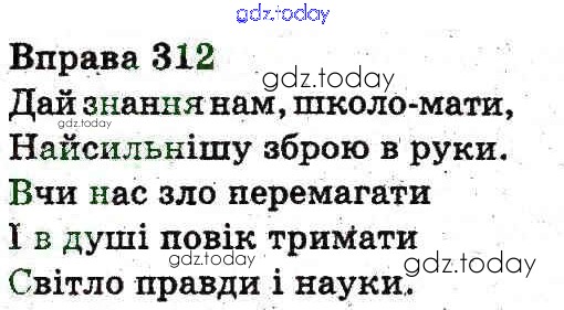 На страницах сайта gdz.today вы найдете учебный и вспомогательный материал, направленный на улучшения знаний школьной программы. ГДЗ - онлайн мир знаний Рішення до Вправи 312 Учебнику по Украинскому языку для 3 класса Гавриш, Макротенко Генеза 2014