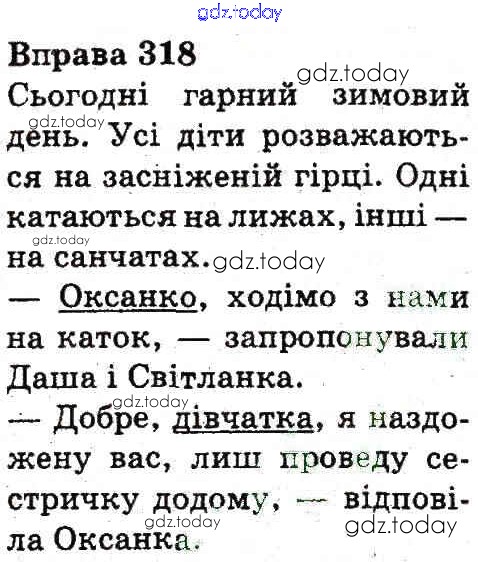 На страницах сайта gdz.today вы найдете учебный и вспомогательный материал, направленный на улучшения знаний школьной программы. ГДЗ - онлайн мир знаний Рішення до Вправи 318 Учебнику по Украинскому языку для 3 класса Гавриш, Макротенко Генеза 2014