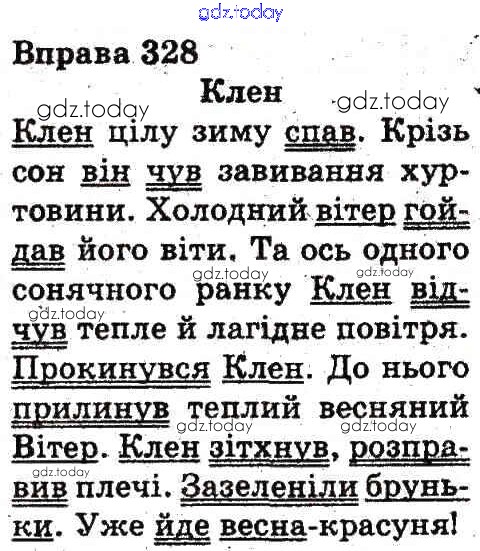 На страницах сайта gdz.today вы найдете учебный и вспомогательный материал, направленный на улучшения знаний школьной программы. ГДЗ - онлайн мир знаний Рішення до Вправи 328 Учебнику по Украинскому языку для 3 класса Гавриш, Макротенко Генеза 2014