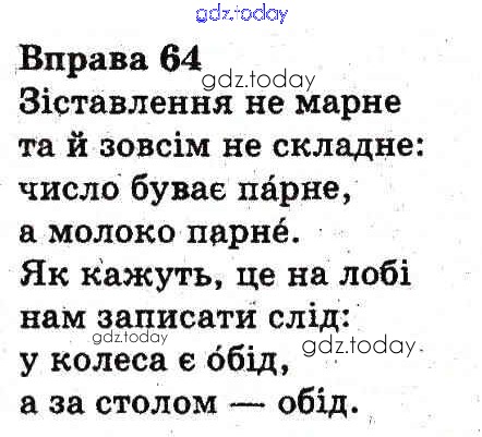 На страницах сайта gdz.today вы найдете учебный и вспомогательный материал, направленный на улучшения знаний школьной программы. ГДЗ - онлайн мир знаний Рішення до Вправи 64 Учебнику по Украинскому языку для 3 класса Гавриш, Макротенко Генеза 2014