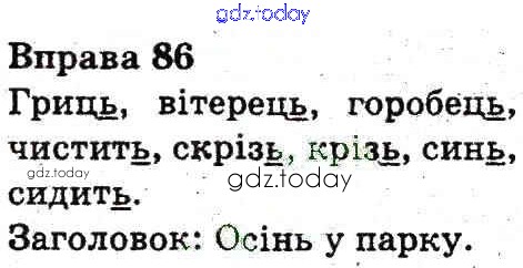 На страницах сайта gdz.today вы найдете учебный и вспомогательный материал, направленный на улучшения знаний школьной программы. ГДЗ - онлайн мир знаний Рішення до Вправи 86 Учебнику по Украинскому языку для 3 класса Гавриш, Макротенко Генеза 2014