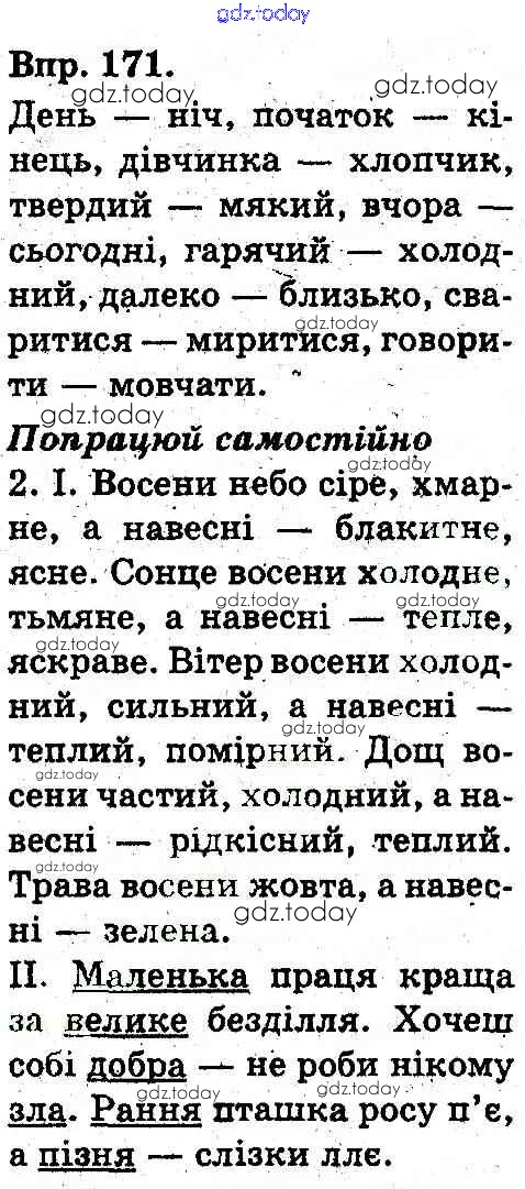 На страницах сайта gdz.today вы найдете учебный и вспомогательный материал, направленный на улучшения знаний школьной программы. ГДЗ - онлайн мир знаний Рішення до вправи 171 Учебнику по Украинскому языку для 3 класса Охота, Хорошовская Освiта 2013