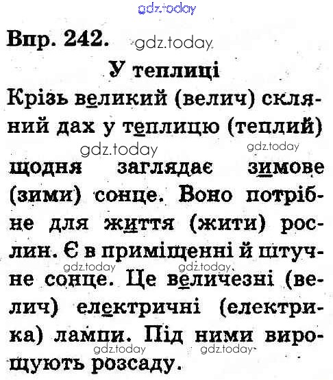 На страницах сайта gdz.today вы найдете учебный и вспомогательный материал, направленный на улучшения знаний школьной программы. ГДЗ - онлайн мир знаний Рішення до вправи 242 Учебнику по Украинскому языку для 3 класса Охота, Хорошовская Освiта 2013