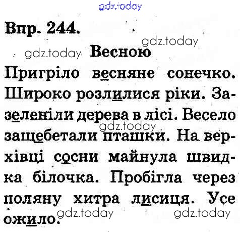 На страницах сайта gdz.today вы найдете учебный и вспомогательный материал, направленный на улучшения знаний школьной программы. ГДЗ - онлайн мир знаний Рішення до вправи 244 Учебнику по Украинскому языку для 3 класса Охота, Хорошовская Освiта 2013
