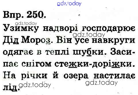 На страницах сайта gdz.today вы найдете учебный и вспомогательный материал, направленный на улучшения знаний школьной программы. ГДЗ - онлайн мир знаний Рішення до вправи 250 Учебнику по Украинскому языку для 3 класса Охота, Хорошовская Освiта 2013