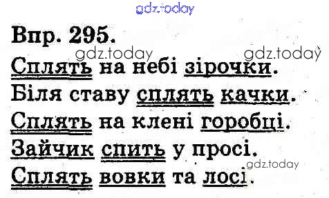 На страницах сайта gdz.today вы найдете учебный и вспомогательный материал, направленный на улучшения знаний школьной программы. ГДЗ - онлайн мир знаний Рішення до вправи 295 Учебнику по Украинскому языку для 3 класса Охота, Хорошовская Освiта 2013