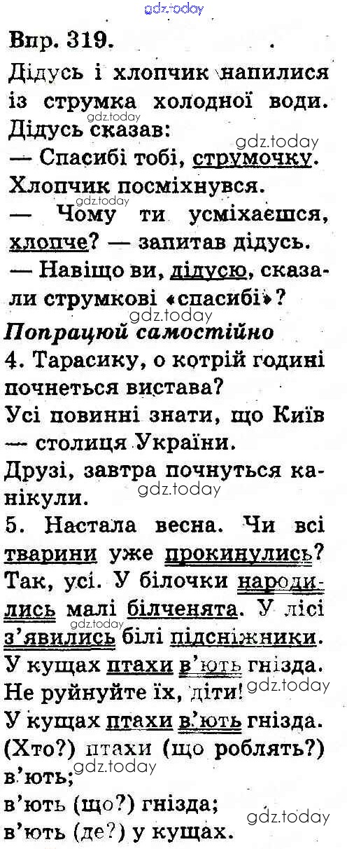На страницах сайта gdz.today вы найдете учебный и вспомогательный материал, направленный на улучшения знаний школьной программы. ГДЗ - онлайн мир знаний Рішення до вправи 319 Учебнику по Украинскому языку для 3 класса Охота, Хорошовская Освiта 2013