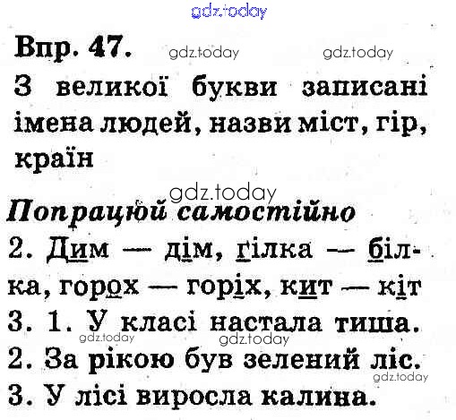 На страницах сайта gdz.today вы найдете учебный и вспомогательный материал, направленный на улучшения знаний школьной программы. ГДЗ - онлайн мир знаний Рішення до вправи 47 Учебнику по Украинскому языку для 3 класса Охота, Хорошовская Освiта 2013