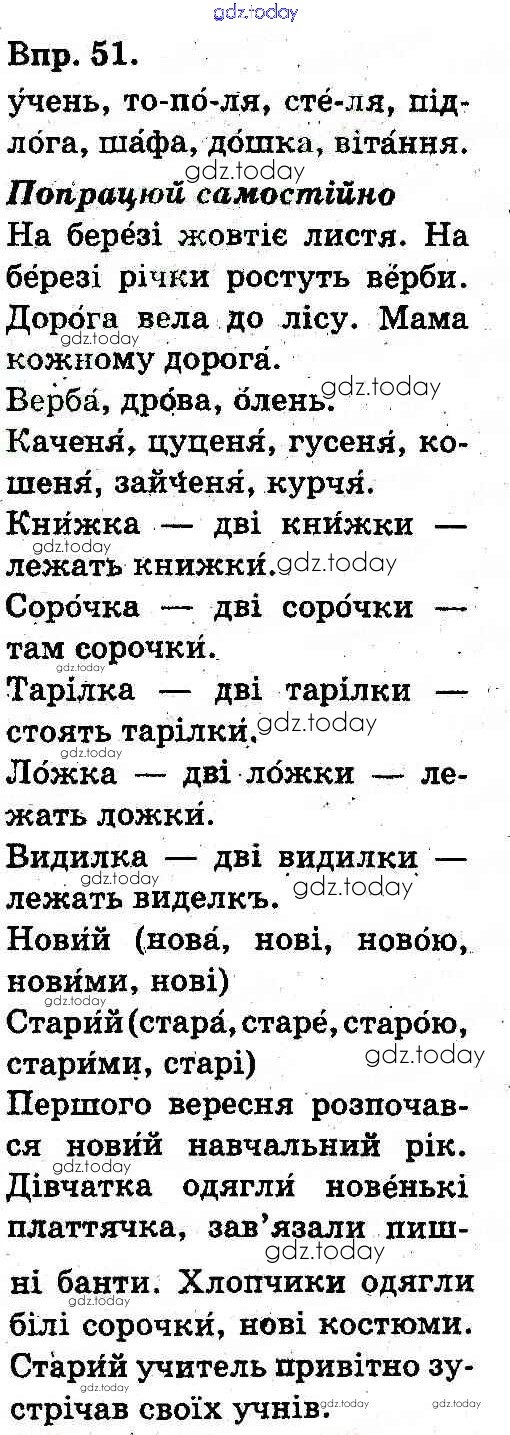 На страницах сайта gdz.today вы найдете учебный и вспомогательный материал, направленный на улучшения знаний школьной программы. ГДЗ - онлайн мир знаний Рішення до вправи 51 Учебнику по Украинскому языку для 3 класса Охота, Хорошовская Освiта 2013