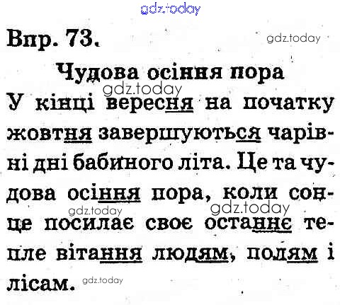 На страницах сайта gdz.today вы найдете учебный и вспомогательный материал, направленный на улучшения знаний школьной программы. ГДЗ - онлайн мир знаний Рішення до вправи 73 Учебнику по Украинскому языку для 3 класса Охота, Хорошовская Освiта 2013