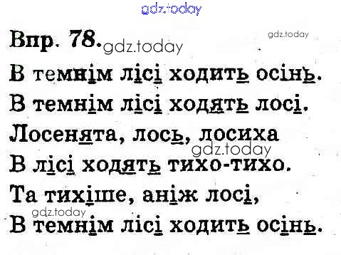 На страницах сайта gdz.today вы найдете учебный и вспомогательный материал, направленный на улучшения знаний школьной программы. ГДЗ - онлайн мир знаний Рішення до вправи 78 Учебнику по Украинскому языку для 3 класса Охота, Хорошовская Освiта 2013