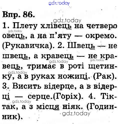 На страницах сайта gdz.today вы найдете учебный и вспомогательный материал, направленный на улучшения знаний школьной программы. ГДЗ - онлайн мир знаний Рішення до вправи 86 Учебнику по Украинскому языку для 3 класса Охота, Хорошовская Освiта 2013
