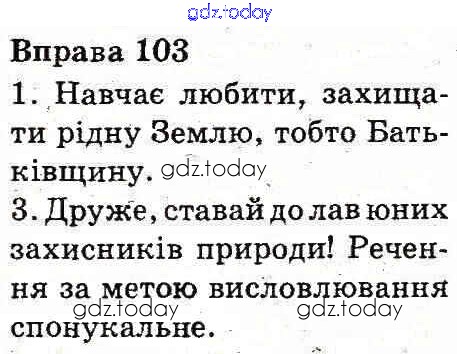 На страницах сайта gdz.today вы найдете учебный и вспомогательный материал, направленный на улучшения знаний школьной программы. ГДЗ - онлайн мир знаний Рішення до Вправи 103 Учебнику по Украинскому языку для 3 класса Вашуленко Украина 2013