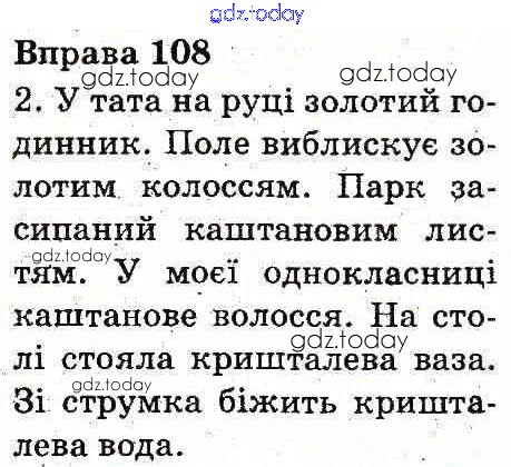 На страницах сайта gdz.today вы найдете учебный и вспомогательный материал, направленный на улучшения знаний школьной программы. ГДЗ - онлайн мир знаний Рішення до Вправи 108 Учебнику по Украинскому языку для 3 класса Вашуленко Украина 2013