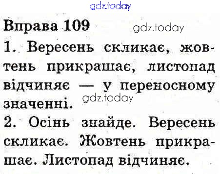 На страницах сайта gdz.today вы найдете учебный и вспомогательный материал, направленный на улучшения знаний школьной программы. ГДЗ - онлайн мир знаний Рішення до Вправи 109 Учебнику по Украинскому языку для 3 класса Вашуленко Украина 2013