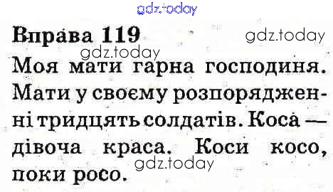 На страницах сайта gdz.today вы найдете учебный и вспомогательный материал, направленный на улучшения знаний школьной программы. ГДЗ - онлайн мир знаний Рішення до Вправи 119 Учебнику по Украинскому языку для 3 класса Вашуленко Украина 2013