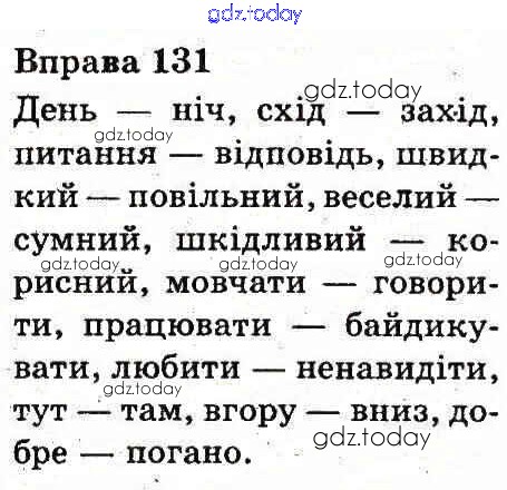 На страницах сайта gdz.today вы найдете учебный и вспомогательный материал, направленный на улучшения знаний школьной программы. ГДЗ - онлайн мир знаний Рішення до Вправи 131 Учебнику по Украинскому языку для 3 класса Вашуленко Украина 2013