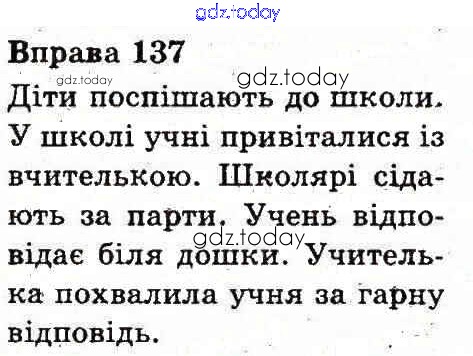 На страницах сайта gdz.today вы найдете учебный и вспомогательный материал, направленный на улучшения знаний школьной программы. ГДЗ - онлайн мир знаний Рішення до Вправи 137 Учебнику по Украинскому языку для 3 класса Вашуленко Украина 2013